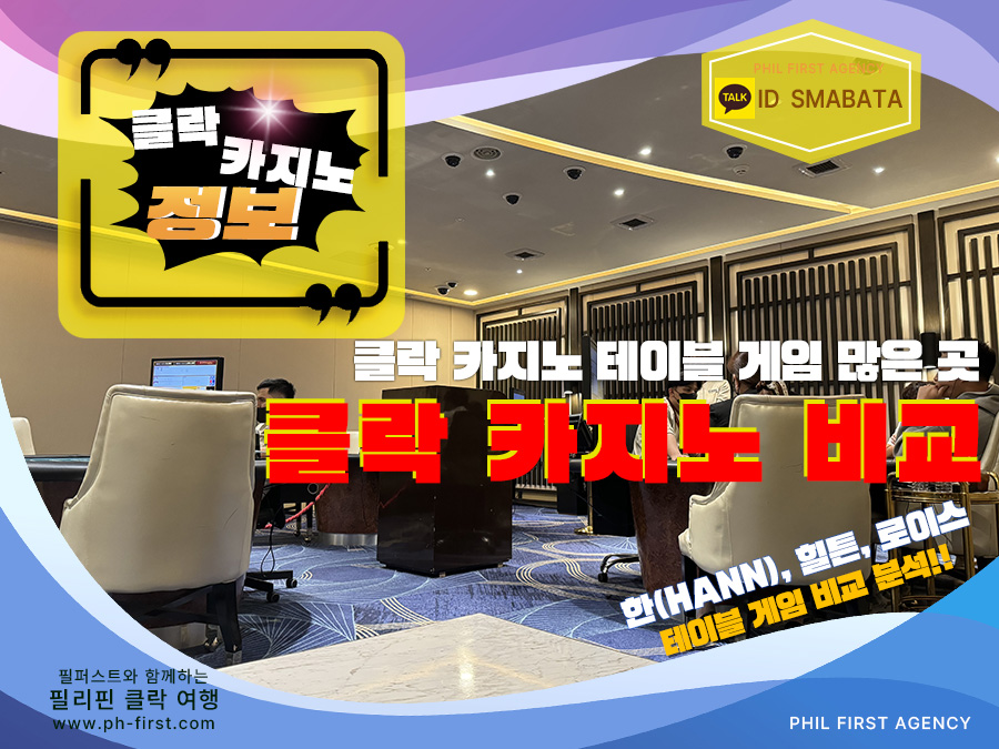 필리핀 클락 카지노가 최고의 선택인 이유!!아직도 강원랜드를 가시는 분들이 계신가요?안녕하세요 클락 카지노 매니저 "필퍼스트 에이전시" 입니다!!한국 유일의 내국인 카지노 강원도 정선의 강원랜드 한번쯤 가보신 적 있으실까요?저 역시 약 10년 전 재미삼아 몇 차례 강원랜드를 찾았던 기억이 있습니다^^강원랜드는 한국에 있는 유일한 내국인 카지노이다 보니 소소한 재미를 보기 위해서한번씩 찾아가는 분들이 계시겠지만 솔직히 카지노를 즐기기 위해 가기에 좋은 곳은 아니잖아요~그 이유는 전 세계 카지노 중 강원랜드에만 존재하는 특이점 때문이 아닐까 싶은데요!!오늘은 필리핀 클락 카지노와 강원랜드를 비교해 왜 클락 카지노를 방문해야 하는지 알아보도록 하겠습니다^^필리핀 클락 카지노 에이전시카톡 ID - SMABATA하나. 카지노 입장료전 세계 카지노 중 입장료를 받는 카지노는 대한민국의 강원랜드가 유일하지 않을까 싶습니다^^입장료 9,000원 그리고 현금으로만 결제 가능!!돈을 쓰러 간 카지노에서 입장료를 받는다는 코미디가 실제로 일어나고 있는 곳이 바로 강원랜드 입니다~필리핀 클락 카지노 뿐만 아니라 전 세계 어느 카지노를 가더라도 입장료는 당연히 없는 것 알고 계시죠?결론 : 입장료 내는 카지노는 카지노가 아니다!!둘. 24시간 운영하지 않는 카지노강원랜드의 운영 시간은 AM 10:00 ~ 익일 AM 06:00 까지로 24시간 운영하는 카지노가 아니에요!!돈을 따든 잃든 새벽 6시가 되면 청소 등의 이유로 퇴장을 해야하는 카지노가 바로 강원랜드 입니다~게임이 잘 풀려 이기고 있다면 다행이지만 돈을 잃고 있는데 영업 끝났다고 나가라고 한다면....더불어 연간 출입일 수 제한도 있기 때문에 가고 싶어도 못 가는 경우가 생기기도 하죠~반면 필리핀 클락 카지노는 1년 365일 연중 무휴로 언제나 열려있기에시간적 제약을 받을 일도 전혀 없습니다!!결론 : 눈치 보며 강원랜드를 가지 마시고 편안하게 클락 카지노를 방문하세요^^셋. 이 곳은 카지노인가 시장 바닥인가..한 번쯤 강원랜드를 방문 해보셨던 분들은 여기가 진짜 카지노가 맞나라는 생각 해보시지 않았을까요?오픈 시간에 맞춰 번호 순서대로 카지노 입장 후 테이블 게임 및 슬롯머신 좌석 경쟁!!좌석 대비 방문객이 너무 많아 입장이 늦었을 경우 절대로 앉아서 게임을 할 수 없는 구조로돌아다니며 서서 게임을 해야 하기 때문에 여러가지로 불편함이 한두가지가 아니잖아요^^그와 비교해 클락 한(HANN) 카지노, 힐튼 디하이츠 카지노, 로이스 카지노 등 클락을 대표하는 카지노는다양한 테이블 게임 및 좌석 그리고 슬롯머신 게임 종류도 많아 편하게 게임을 즐길 수 있는 곳이에요!!더불어 카지노 내 VIP 정킷 객장 역시 잘 형성되어 있어 프라이빗한 게임도 즐기기 좋은 카지노 입니다^^결론 : 복잡한 시장 같은 곳에서 게임 하지 마시고 클락 카지노 방문을 추천 드립니다!!넷. 최대 배팅 금액 30만원강원랜드의 최대 배팅 금액은 30만원으로 한정되어 있습니다!!카지노 게임을 해보신 분들은 모두 아시겠지만 맥스 배팅이 30만원 이라는 건 돈을 잃고 가라는 얘기죠~절대로 돈을 따고 나올 수 없는 카지노가 바로 강원랜드가 아닐까 싶습니다^^카지노에서 최대 배팅 금액이 크다고 모두 돈을 따고 나올 수 있다는 얘기는 아니지만승부를 볼 수 있는 구간에서는 과감하게 승부를 봐야지만 좋은 결과가 나오는거라 생각을 해요!!강원랜드와 비교해 필리핀 클락 카지노는 최소 배팅 금액과 최대 배팅 금액의 차이가 크기 때문에과감한 승부도 볼 수 있고 훨씬 더 카지노 게임을 즐기기 좋은 환경이 아닐까 싶습니다^^결론 : 강원랜드 에서는 절대 돈을 따고 나올 수 없다!!다섯. 카지노 식당 음식 굉장히 비싸고 맛 없다강원랜드가 위치한 하이원 리조트 내 식당은 굉장히 비싸고 또 맛 없기로 유명하죠!!식사를 위해 외출을 하려고 하더라도 어느 정도 거리가 있고 지역 물가 역시 굉장히 비싸잖아요~반면 클락 카지노에는 레스토랑 및 F&B 서비스가 잘 형성되어 있어 따로 외출을 하지 않더라도카지노 내에서 모든 식,음료를 편하게 해결할 수 있습니다^^클락 카지노 인근에도 한식을 포함한 다양한 맛집이 여러 곳 있어 언제든 편하게 끼니를 해결할 수 있어요!!결론 : 강원랜드는 부대시설 이용 역시 불편함이 많다!!여섯. 게임을 즐길 수 있는 분위기가 아니다강원랜드는 게임을 즐기는 분위기가 만들어질 수 없는 카지노가 아닐까 싶습니다~강원랜드 특유의 어둡고 칙칙한 분위기와 함께 많은 사람으로 인해 시장 바닥 같은 느낌!!게임을 즐기기 위해 카지노를 찾는 사람도 많은데 그런 분들에게 최악의 카지노가 아닐까 싶습니다^^특히 블랙잭 같이 함께 테이블에 앉은 플레이어 끼리 합이 맞아야 하는 테이블 게임 이용시강원랜드 특유의 룰을 함께 따르지 않으면 욕을 먹고 눈치를 봐야 하는 경우도 굉장히 많아요~게임도 즐기고 스트레스를 풀러 시간을 내어 멀고 먼 강원랜드 까지 방문을 했는데오히려 스트레스가 쌓여오는 곳이 아닐까 싶습니다^^반면 클락 카지노는 다양한 테이블 게임, 슬로머신이 있어 게임을 즐길 수 있는 최고의 환경을 자랑해