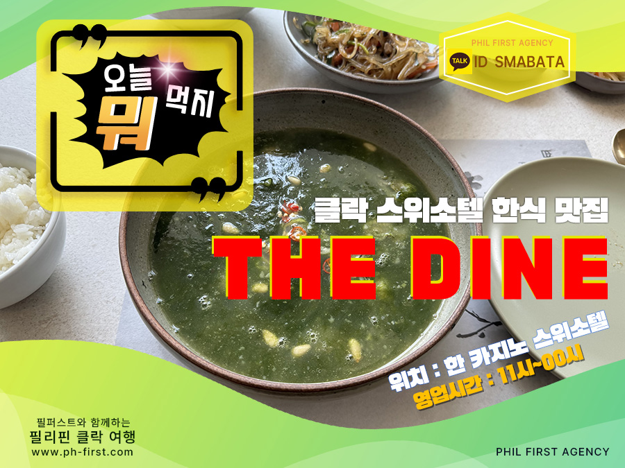 클락 한(HANN) 카지노 스위소텔 맛집 '더 다인 (THE DINE)'한(HANN) 카지노를 방문 하신다면 꼭 한번 가셔서 맛있는 한식 드시길 바랍니다^^안녕하세요 클락 카지노 매니저 "필퍼스트 에이전시" 입니다!!한(HANN) 리조트 & 카지노는 식당이나 쇼핑 공간이 가장 잘 이루어진 대표적인 클락 카지노 입니다~그래서 따로 외출이 필요 없이 카지노 내에서 식사를 비롯해 여유있는 시간을 보내기 좋은 곳이에요^^한(HANN) 카지노 스위소텔 1층에는 다양한 고급 레스토랑이 여러 곳 있는 편인데오늘은 그 중에서도 '더 다인 (THE DINE)' 이라는 한식 레스토랑 방문 후기를 전달 해드리겠습니다!!클락 여행 중 고급스러운 분위기의 한식을 원하시는 분들께 추천 해드립니다~클락 한(HANN) 카지노 맛집 추천더 다인 (THE DINE)대표 메뉴 - 매생이 굴국, 차돌 된장찌개, 제육 볶음 등위치 - 클락 한(HANN) 리조트 & 카지노 스위소텔 1층영업 시간 - AM 11:00 ~ AM 00:00재방문 의사 - ★★★★☆클락 한(HANN) 리조트 & 카지노 스위소텔 맛집 '더 다인 (THE DINE)'은5성급 호텔 내 위치한 레스토랑 답게 고급스러운 분위기를 자랑하는 한식 레스토랑 입니다!!기본 밑반찬만 잘 나오는 식당을 가더라도 밥 한공기 뚝딱 가능하신 분들 많죠?'더 다인 (THE DINE)'을 방문 하신다면 충분히 만족하실거라 생각 합니다!!따뜻한 잡채부터 시작해서 전 까지 모두 완벽^^필리핀 클락에서 쉽게 맛 보기 힘든 매생이 굴국은 꼭 맛 보면 좋을만한 대표 메뉴에요~개인적으로 한국에서 먹던 맛과 비교를 해보아도 전혀 부족함이 없는 맛이었습니다^^'더 다인 (THE DINE)' 차돌 된장찌개 역시 구수하고 맛이 굉장히 좋습니다!!한국인은 된장찌개에 제육 볶음이나 오징어 볶음 조합 싫어하시는 분들 없잖아요~'더 다인' 방문하시면 위 두 가지 조합 추천 드리고 싶어요^^'더 다인'은 솔직히 말씀드려서 가성비가 좋은 식당이라고 생각하지는 않습니다!!클락 최고급 리조트 & 카지노에 위치해 있다보니 금액대가 높은 식당이기도 하구요~계산시 10% 봉사료가 붙는다는 단점도 있어요^^그래도 장점은 깔끔한 분위기의 고급 레스토랑이라는 점, 대체적으로 음식 퀄리티가 높고무엇보다 카지노 내 위치한 한식 레스토랑이다 보니 번거롭게 외출을 할 필요가 없다는 점일 것 같습니다^^그래서 특히 클락 한(HANN) 카지노 이용 고객이 많이 찾는 레스토랑 이기도 해요!!클락 한(HANN) 카지노에서 테이블 게임이나 슬롯머신 게임을 이용하시는 분들께서는게임 실적에 따른 멤버쉽 카드 포인트로도 이용이 가능한 레스토랑이니한(HANN) 카지노에서 게임을 하실때 멤버쉽 카드를 꼭 제출해서 포인트를 쌓길 바라겠습니다^^▶ 필리핀 클락 카지노 이용 문의필리핀 클락 카지노 정킷 이용 문의카톡 ID - SMABATA#클락_카지노 #필리핀_카지노 #필리핀_클락_카지노 #마닐라_카지노 #앙헬레스_카지노 #클락_카지노_에이전시 #클락_카지노_에이전트 #클락_한_카지노 #클락_위더스_카지노 #클락_힐튼_디하이츠_카지노 #클락_로이스_카지노 #클락_미도리_카지노 #클락_힐튼_카지노 #클락_카지노_프리룸 #클락_카지노_호텔_프리룸 #클락_리조트_카지노 #클락_카지노_정킷 #클락_카지노_정킷_서비스 #클락_카지노_정킷_이용혜택 #클락_카지노_문의 #클락_카지노_환전 #클락_카지노_환전소 #클락_카지노_송금_환전 #클락_카지노_계좌이체_환전 #클락_카지노_원화_페소_환전 #클락_카지노_계좌이체_환전 #클락_카지노_페소_환전 #클락_카지노_페소_환전_방법 #클락_카지노_환전_방법 #클락_카지노_정킷_에이전시 #클락_카지노_무료_숙박 #클락_카지노_멤버쉽_포인트 #클락_카지노_추천 #클락_위더스_카지노