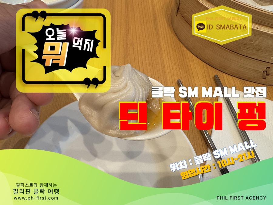클락 한(HANN) 카지노, 힐튼 디하이츠 카지노, 로이스 카지노 맛집클락 SM몰 딤섬 맛집 '딘 타이 펑 (DIN TAI FUNG)'안녕하세요 클락 카지노 "필퍼스트 에이전시" 입니다!!오늘은 오랜만에 클락 여행 중 입을 즐겁게 해 줄 맛집 한 곳을 소개 해드리려 합니다^^클락 여행 오면 꼭 한번 들린다는 클락 SM몰에 새로 생긴 딤섬 맛집이에요~클락 카지노에서도 멀지 않은 거리에 위치해 있으니 시간 내어 꼭 한번 들려보시길 바랍니다!!클락 SM몰에 새로이 오픈한 딤섬 맛집 '딘 타이 펑 (DIN TAI FUNG)' 소개 해드릴께요.클락 카지노 맛집 추천딘 타이 펑 (DIN TAI FUNG)위치 - 클락 SM몰 내추천 메뉴 - 샤오롱바오, 샤오마이 등 딤섬영업 시간 - AM 10:00 ~ PM 09:00재방문 의사 - ★★★★★클락 와서 오늘 점심, 저녁은 뭘 먹지 고민하시는 분들께 매일 똑같은 메뉴만 추천을 드렸어요특히 클락 한(HANN) 카지노, 힐튼 디하이츠 카지노, 로이스 카지노를 자주 방문하시는 분들께서는조금은 지겹고 한번 쯤 색다른 메뉴를 원하시는 분들이 많이 계신데그런 분들께 적극 추천드릴 수 있는 맛집이 바로 '딘 타이 펑' 입니다!!대만에서 이미 유명한 맛집으로 한국 그리고 필리핀 마닐라에도 체인점이 있을 정도로 맛이 좋은데그런 맛집이 드디어 필리핀 클락에도 오픈을 해서 오픈런 다녀왔습니다^^오픈한지 얼마 되지 않은 맛집인데 벌써 웨이팅이 생길 정도로 인기 맛집이 되었더라구요~약간의 대기만 하고 바로 클락 맛집 '딘 타이 펑' 들어갈 수 있었는데매장은 엄청 깔끔하고 오픈형 주방이 엄청 눈에 띄더라구요!!오픈형 주방에서 직원들이 직접 딤섬을 만드는데 역시 딤섬 맛집이구나를 알 수 있었습니다^^- 샤오롱바오 : '딘 타이 펑'의 시그니처 딤섬 메뉴- 매운 소스 만두 : 특제 매운 소스를 곁들인 만두 (직원 피셜 인기 메뉴)- 돼지 찹 볶음밥 : 맛도 좋고 양이 엄청 많아요- 땅콩 소스 탄탄면 : 소스가 독특하니 추천할만 합니다- 튀긴 새우 요리 : So So한 맛- 튀긴 소고기 요리 : 실패한 메뉴 중 하나^^;;클락 카지노 맛집 '딘 타이 펑' 전체적으로 음식이 엄청 맛있었습니다~특히 잘 알려진 것 처럼 딤섬은 클락 어떤 딤섬 맛집과 비교해도 No.1!!냉동이 아니라 매장에서 직접 만드는 만큼 육즙도 많고 간장에 저린 생강 하나 올려 먹으면 끝^^클락 SM몰 맛집 '딘 타이 펑' 방문 시 메뉴 선택 TIP을 하나 드리자면한국어로 된 메뉴판이 없어서 뭘 선택해야 하나 잘 모르실 수도 있어요~그런데 메뉴마다 음식 사진이 다 들어가 있고 특히 추천 메뉴는 빨갛게 'Must try'로 표시가 되어 있으니잘 모르겠으면 'Must try'라고 써져있는 메뉴를 선택하면 좋을 것 같더라구요!!이번에 아쉽게도 제가 좋아하는 포크 샤오마이는 맛 보질 못 했는데 아주 기대감이 큽니다~조만간 시간 내서 '딘 타이 펑' 방문 후 꼭 한번 맛 볼 예정이에요!!완탕면이나 면 요리도 수준이 굉장히 높을걸로 예상이 되어 입이 또 즐거워질 것 같습니다^^필리핀 클락 여행 오셔서 매일 똑같은 한식, 중식, 양식 이런 메뉴가 지겨우셨다면저는 시간 내어 클락 SM몰에 위치한 맛집 '딘 타이 펑' 찾아 가보시길 적극 추천드립니다!!미식가(?)로 소문난 저의 추천 맛집이오니 믿어보셔도 좋을 것 같아요^^클락 카지노에서 거리클락 한(HANN) 카지노 : 약 10분클락 힐튼 디하이츠 카지노 : 약 10분클락 로이스 카지노 : 약 7분필리핀 클락 카지노 인근 맛집 '딘 타이 펑 (DIN TAI FUNG)'클락 여행 오셔서 잊지 말고 찾아가신다면 절대 후회하실 일 없을거에요!!▶ 필리핀 클락 카지노 문의클락 카지노 정킷 이용 문의카톡 ID - SMABATA#클락_카지노 #필리핀_카지노 #필리핀_클락_카지노 #마닐라_카지노 #앙헬레스_카지노 #클락_카지노_에이전시 #클락_카지노_에이전트 #클락_한_카지노 #클락_위더스_카지노 #클락_힐튼_디하이츠_카지노 #클락_로이스_카지노 #클락_미도리_카지노 #클락_힐튼_카지노 #클락_카지노_프리룸 #클락_카지노_호텔_프리룸 #클락_리조트_카지노 #클락_카지노_정킷 #클락_카지노_정킷_서비스 #클락_카지노_정킷_이용혜택 #클락_카지노_문의 #클락_카지노_환전 #클락_카지노_환전소 #클락_카지노_송금_환전 #클락_카지노_계좌이체_환전 #클락_카지노_원화_페소_환전 #클락_카지노_계좌이체_환전 #클락_카지노_페소_환전 #클락_카지노_페소_환전_방법 #클락_카지노_환전_방법 #클락_카지노_정킷_에이전시 #클락_카지노_무료_숙박 #클락_카지노_멤버쉽_포인트 #클락_카지노_추천 #클락_위더스_카지노